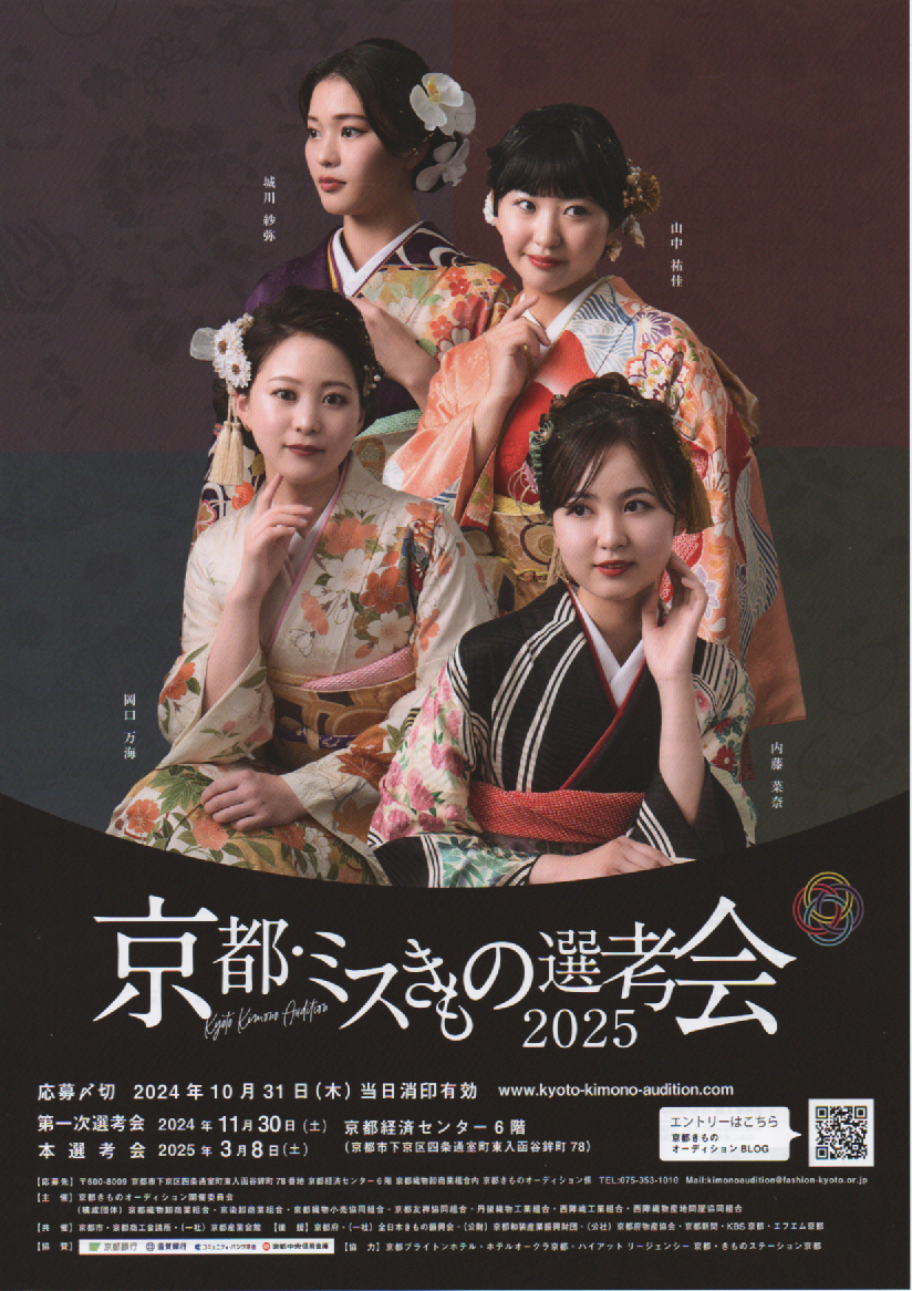 公募・募集 Tags240916 「京都・ミスきもの」25年度 出場者募集 2024年9月25日 0 京都織物卸商業組合を中心に京都の和装関連7団体でつくる京都きものオーディション開催委員会は現在、2025年度の「京都・ミスきもの」選考会への出場者を募集している。申込受付は10月31日まで。 きもの姿で和装振興と観光都市・京都の魅力をPRする「京都・ミスきもの」を選ぶ恒例事業で、11月上旬に書類選考… 残り375文字(全文: 526文字) ログインして続きを見る すでに会員の方はこちらから 染織新報(新聞)を契約済の方 WEB版を会員登録済みの方 新たに会員登録をして続きを見る その場で会員登録をして続きを見ることができます。請求書は後日郵送いたします。 新規会員登録 ※. 本ウェブサイトの記事の著作権は染織新報社に帰属します。無断転載を禁止いたします。 前の記事新作髪飾りカタログ企画発表シャルマン・フルール次の記事和心 1~6月期インバウンド需要回復で経常益7.7倍に急拡大 More articles 京都きものオーディション開催委員会 「2025京都... 2025年9月30日 【短信】「第2回 京都クラフト&デザインコンペティ... 2025年9月30日 【短信】 2025年7月10日 返事を書く 返事をキャンセル コメント: あなたのコメントを入力してください。 名前:* ここにあなたの名前を入力してください Eメール:* 間違ったメールアドレスを入力しました。 ここにあなたのEメールアドレスを入力してください ウェブサイト: 次回の私のコメントのためにこのブラウザに私の名前、電子メール、そしてウェブサイトを保存してください。 Latest article 〈ファーストイノベーション〉JFCAフォーマルウェ... 2025年10月8日 【短信】 2025年10月8日 〈中川政七商店〉ロンドンに初のポップアップストア 2025年10月8日 〈水鳥工業〉新しい楽しみ方 「育てる下駄」 2025年10月8日 展覧会ご案内 (芸術・文化・企画展 他) 2025年10月8日