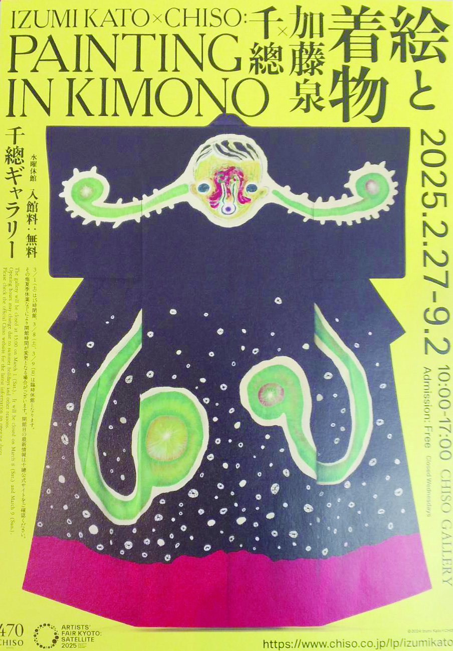 展覧会 Tags250306 千總 創業470周年記念 絵と着物 千總×加藤泉展 2025年3月10日 0 千總は、1555年、京都・烏丸三条に創業し、470周年を迎えた記念として、現代美術家・加藤泉と共同制作した作品を展示する「加藤泉×千總:絵と着物」展を、9月2日まで、千總ギャラリーで開催し、好評を博している。今回の展示作品は、加藤泉氏によるスケッチをもとに、描き友禅や絞り染め、刺繍など20から30も… 残り407文字(全文: 558文字) ログインして続きを見る すでに会員の方はこちらから 染織新報(新聞)を契約済の方 WEB版を会員登録済みの方 新たに会員登録をして続きを見る その場で会員登録をして続きを見ることができます。請求書は後日郵送いたします。 新規会員登録 ※. 本ウェブサイトの記事の著作権は染織新報社に帰属します。無断転載を禁止いたします。 前の記事京都嵯峨野和装学院次の記事京都で 3月4日を“蚕糸の日とする”イベントを開催 関係者ら多数参加 (一社)日本サステナブルシルク協会 More articles 京都工芸美術作家協会展 京都文化博物館で好評 2025年10月8日 〈共立女子大学博物館〉「和モダンー銘仙 着物の華や... 2025年10月8日 〈東京時事通信ホール〉沖縄工芸フェア 体験や講演に... 2025年10月8日 返事を書く 返事をキャンセル コメント: あなたのコメントを入力してください。 名前:* ここにあなたの名前を入力してください Eメール:* 間違ったメールアドレスを入力しました。 ここにあなたのEメールアドレスを入力してください ウェブサイト: 次回の私のコメントのためにこのブラウザに私の名前、電子メール、そしてウェブサイトを保存してください。 Latest article 〈ファーストイノベーション〉JFCAフォーマルウェ... 2025年10月8日 【短信】 2025年10月8日 〈中川政七商店〉ロンドンに初のポップアップストア 2025年10月8日 〈水鳥工業〉新しい楽しみ方 「育てる下駄」 2025年10月8日 展覧会ご案内 (芸術・文化・企画展 他) 2025年10月8日