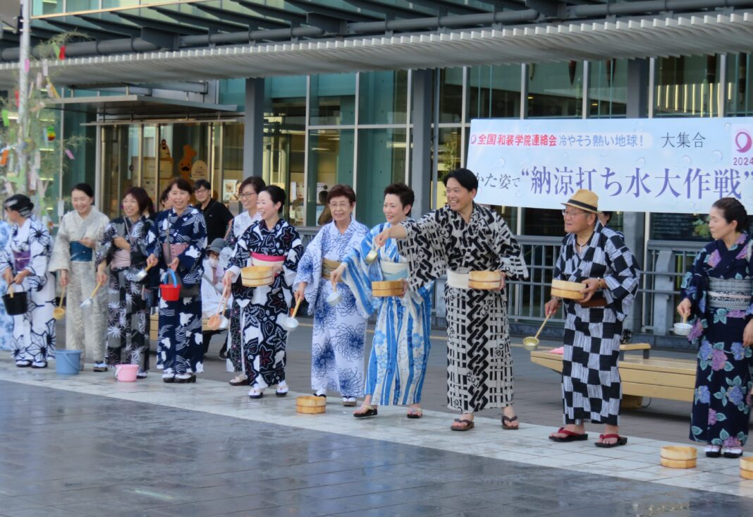 文化・芸術 Tags240716 岐阜市長も参加し盛大にゆかた姿で「打ち水大作戦」(一社)装賀きもの学院 2024年8月20日 0 柴橋正直岐阜市長(右から3人目)も参加 (一社)装賀きもの学院(岐阜、安田多賀子代表)は7月7日、JR岐阜駅に隣接する広場・スクエア43で恒例の「納涼打ち水大作戦」を行った。 学院関係者や市民に加え、柴橋正直岐阜市長や若井敦子岐阜県議会議員、杉山利夫岐阜市議会議員ら50人がゆかたを着て参加。夕方5時に、風呂桶やひしゃくなどを使って一斉に路… 残り711文字(全文: 862文字) ログインして続きを見る すでに会員の方はこちらから 染織新報(新聞)を契約済の方 WEB版を会員登録済みの方 新たに会員登録をして続きを見る その場で会員登録をして続きを見ることができます。請求書は後日郵送いたします。 新規会員登録 ※. 本ウェブサイトの記事の著作権は染織新報社に帰属します。無断転載を禁止いたします。 前の記事つた勘呉服店(長野) 破産手続き開始次の記事京商「飛翔展」開催 岡重商品を特集展示 More articles 京都市はたちを祝う記念式典 2026年1月28日 産地の活性化に関連団体と協働し行政もバックアップ、... 2026年1月23日 金沢百万石きものショー 2026年1月23日 返事を書く 返事をキャンセル コメント: あなたのコメントを入力してください。 名前:* ここにあなたの名前を入力してください Eメール:* 間違ったメールアドレスを入力しました。 ここにあなたのEメールアドレスを入力してください ウェブサイト: 次回の私のコメントのためにこのブラウザに私の名前、電子メール、そしてウェブサイトを保存してください。 Latest article 室町問屋の展示会のご案内 2月 2026年1月28日 展覧会ご案内 (芸術・文化・企画展 他) 2026年1月28日 元気と勇気と自信が湧く 心理学講座「和装編①」 シ... 2026年1月28日 キモノスイッチフォーラム「キモノの未来を考える」 2026年1月28日 小林豊子きもの学院の「きものの日」取り組み成果 全... 2026年1月28日