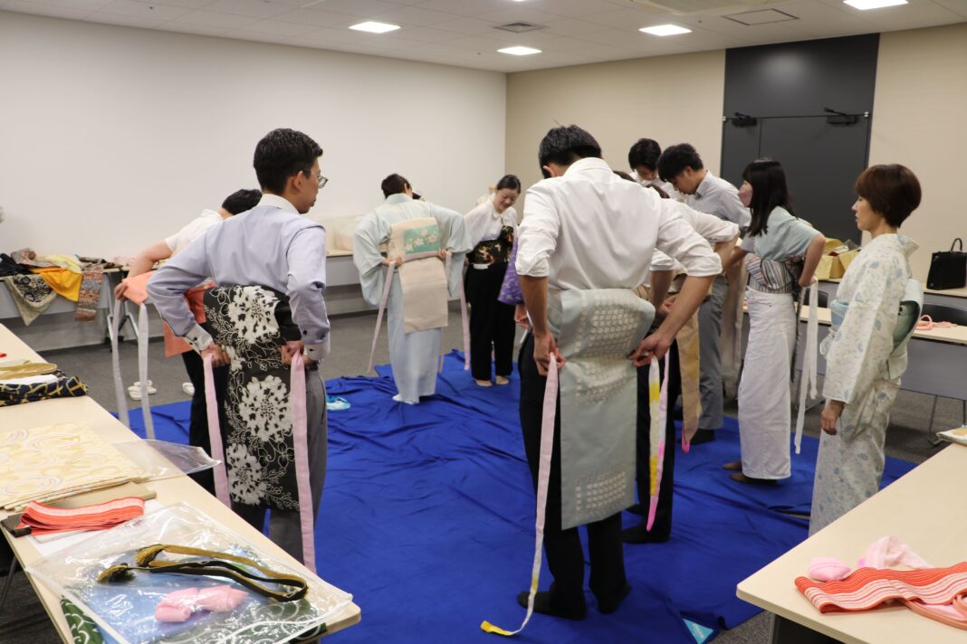 文化・芸術 Tags240906 男性も“太鼓結び”体験「帯の結び方講座」を実施京都織商・染織呉服部 2024年9月11日 0 男性社員も「お太鼓結び」にチャレンジ 京都織物卸商業組合の染織呉服部(小澤達也部長)は8月22日、同部加盟商社の従業員を対象とした「帯の結び方講座」を京都市下京区の京都経済センターで実施した。同講座は、会員商社の人材育成を支援するために今年度から再開した研修事業で、きものを取り扱う社員として必要な商品知識やスキルを習得する機会を提供して… 残り324文字(全文: 475文字) ログインして続きを見る すでに会員の方はこちらから 染織新報(新聞)を契約済の方 WEB版を会員登録済みの方 新たに会員登録をして続きを見る その場で会員登録をして続きを見ることができます。請求書は後日郵送いたします。 新規会員登録 ※. 本ウェブサイトの記事の著作権は染織新報社に帰属します。無断転載を禁止いたします。 前の記事レンタルきもの「愛和服」観光復活 京都で出店攻勢次の記事「全国小紋友禅染色競技会」10月18日開催 More articles 第3回たちばな杯 かるた大会 共催:たちばな・長野... 2025年10月8日 和文化体験コンテンツ 日本の心、十二単神事 岡山後... 2025年9月9日 〈日本和装学園〉万博会場できものフェス 来場者に大... 2025年9月9日 返事を書く 返事をキャンセル コメント: あなたのコメントを入力してください。 名前:* ここにあなたの名前を入力してください Eメール:* 間違ったメールアドレスを入力しました。 ここにあなたのEメールアドレスを入力してください ウェブサイト: 次回の私のコメントのためにこのブラウザに私の名前、電子メール、そしてウェブサイトを保存してください。 Latest article 〈ファーストイノベーション〉JFCAフォーマルウェ... 2025年10月8日 【短信】 2025年10月8日 〈中川政七商店〉ロンドンに初のポップアップストア 2025年10月8日 〈水鳥工業〉新しい楽しみ方 「育てる下駄」 2025年10月8日 展覧会ご案内 (芸術・文化・企画展 他) 2025年10月8日