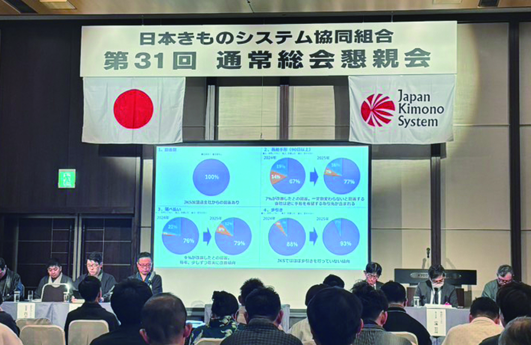 短信 Tags260116 日本きものシステム 第31回通常総会 2026年1月23日 0 全国の呉服専門店及び小売店42社で組織する日本きものシステム協同組合(本部・京都、通称JKS)は12月9日、京都東急ホテルで「第31回通常総会」並びに「講演会・懇親会」を開催し、組合員や取引先など約120人が参加した。 JKSは、2年前の総会で「商慣行改善決議案」が審議され、延べ払い、長期手形、歩引… 残り342文字(全文: 493文字) ログインして続きを見る すでに会員の方はこちらから 染織新報(新聞)を契約済の方 WEB版を会員登録済みの方 新たに会員登録をして続きを見る その場で会員登録をして続きを見ることができます。請求書は後日郵送いたします。 新規会員登録 ※. 本ウェブサイトの記事の著作権は染織新報社に帰属します。無断転載を禁止いたします。 前の記事2026 新春メッセージ 千切屋次の記事2026 新春メッセージ パールトーン More articles 総務省統計局 新成人過去2番目の少なさ 2026年1月28日 短信 2026年1月28日 小林豊子きもの学院の「きものの日」取り組み成果 全... 2026年1月28日 返事を書く 返事をキャンセル コメント: あなたのコメントを入力してください。 名前:* ここにあなたの名前を入力してください Eメール:* 間違ったメールアドレスを入力しました。 ここにあなたのEメールアドレスを入力してください ウェブサイト: 次回の私のコメントのためにこのブラウザに私の名前、電子メール、そしてウェブサイトを保存してください。 Latest article 室町問屋の展示会のご案内 2月 2026年1月28日 展覧会ご案内 (芸術・文化・企画展 他) 2026年1月28日 元気と勇気と自信が湧く 心理学講座「和装編①」 シ... 2026年1月28日 キモノスイッチフォーラム「キモノの未来を考える」 2026年1月28日 小林豊子きもの学院の「きものの日」取り組み成果 全... 2026年1月28日