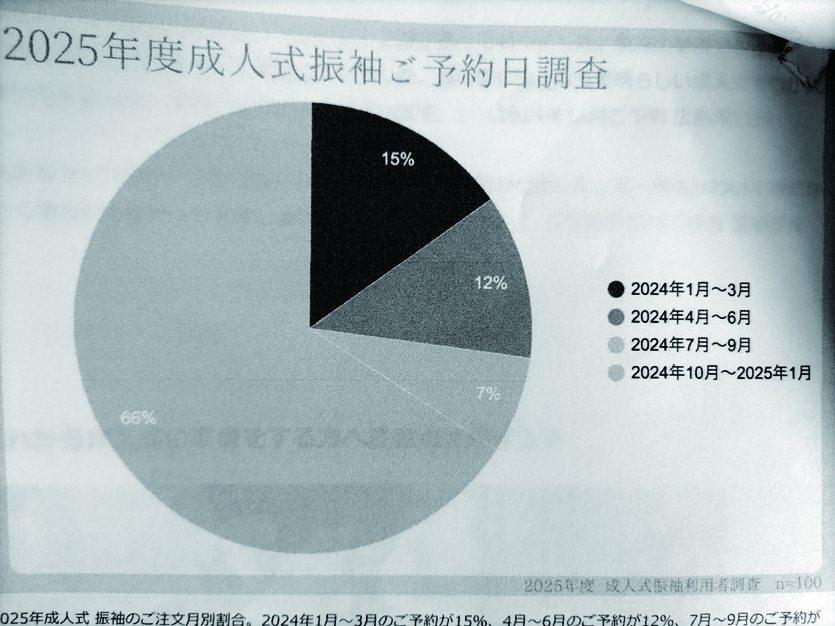 短信 Tags251116 成人式直前・振袖はまだ間に合う?それぞれのメリット・デメリット分析 きものレンタリエ(和とわ)調査 2025年11月18日 0 DSC_1396 「振袖はまだ間に合う?」成人式の振袖、約6割が「11・12・1月」予約〜直前でも諦めない!成人式直前レンタルの探し方〜きものレンタリエ(㈱和とわ=岩手県一関市、高橋市郎兵衛社長)は、2025年1月の成人式で振袖を利用していただいたお客様100名に、成人式直前での消費者の不安を解消する狙いで、アンケー… 残り1272文字(全文: 1423文字) ログインして続きを見る すでに会員の方はこちらから 染織新報(新聞)を契約済の方 WEB版を会員登録済みの方 新たに会員登録をして続きを見る その場で会員登録をして続きを見ることができます。請求書は後日郵送いたします。 新規会員登録 ※. 本ウェブサイトの記事の著作権は染織新報社に帰属します。無断転載を禁止いたします。 前の記事彩琳 藤井 寛「卒寿記念展」次の記事「TANGO TEXTILE EXHIBITION/第76回 丹後織物求評会 – 未来へ織り継ぐ丹後織物 – 」 入賞作品決定! More articles 着物でまちあるき 京都和装産業振興財団 2025年12月18日 【短信】 2025年12月18日 絹×ガラス 伊と幸 次代の和の新ビジネスモデル 2025年12月18日 返事を書く 返事をキャンセル コメント: あなたのコメントを入力してください。 名前:* ここにあなたの名前を入力してください Eメール:* 間違ったメールアドレスを入力しました。 ここにあなたのEメールアドレスを入力してください ウェブサイト: 次回の私のコメントのためにこのブラウザに私の名前、電子メール、そしてウェブサイトを保存してください。 Latest article 京都の有力前売問屋 11月の動向 京都きもの懇話会... 2025年12月30日 室町問屋の展示会のご案内 1月 2025年12月30日 頌春 令和八年 【初市特集】 2025年12月30日 宝飾品市場(ジュエリー)に関する調査 ─ 矢野経済... 2025年12月18日 きもの風ガウン 大輪の牡丹柄&伝統文”... 2025年12月18日